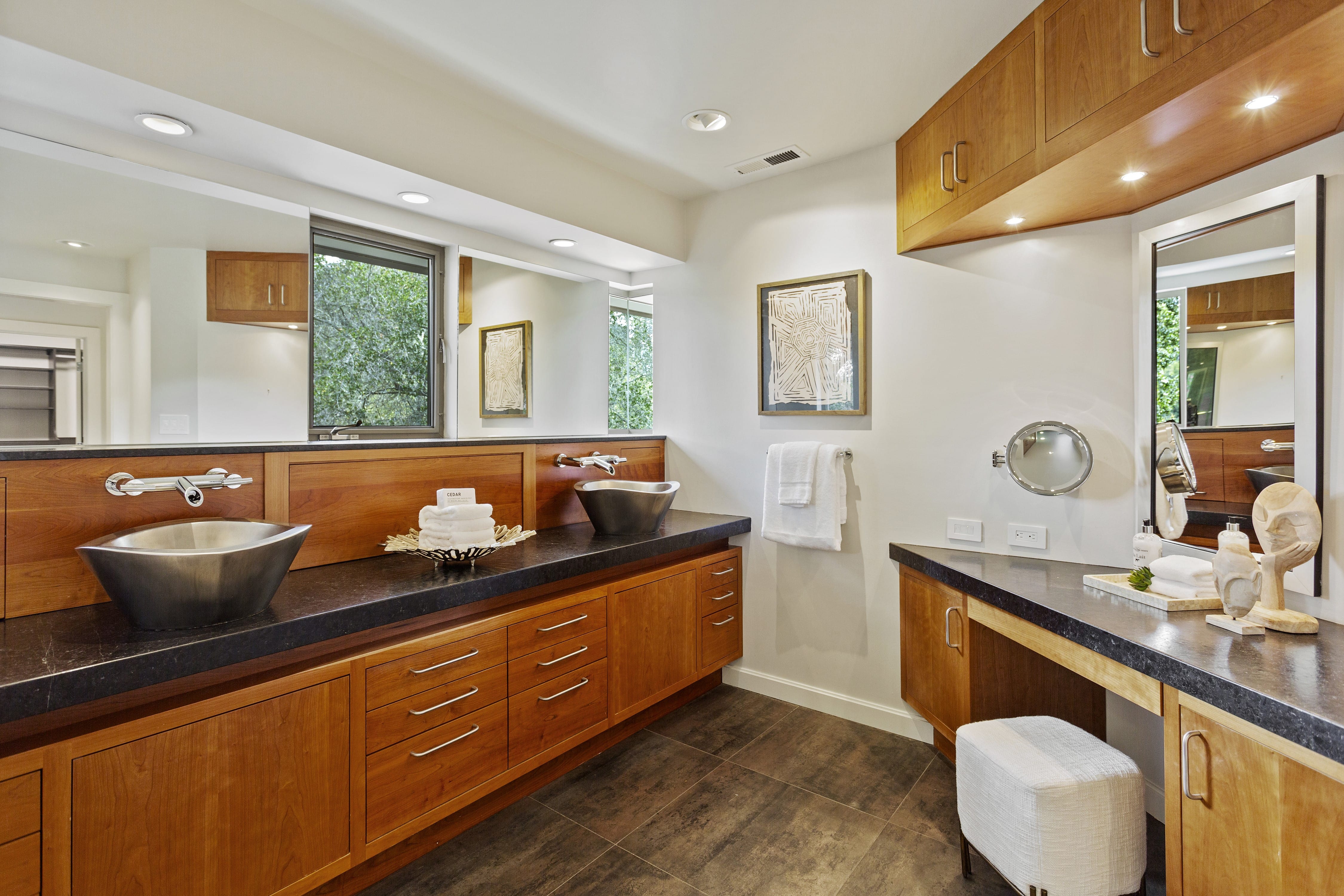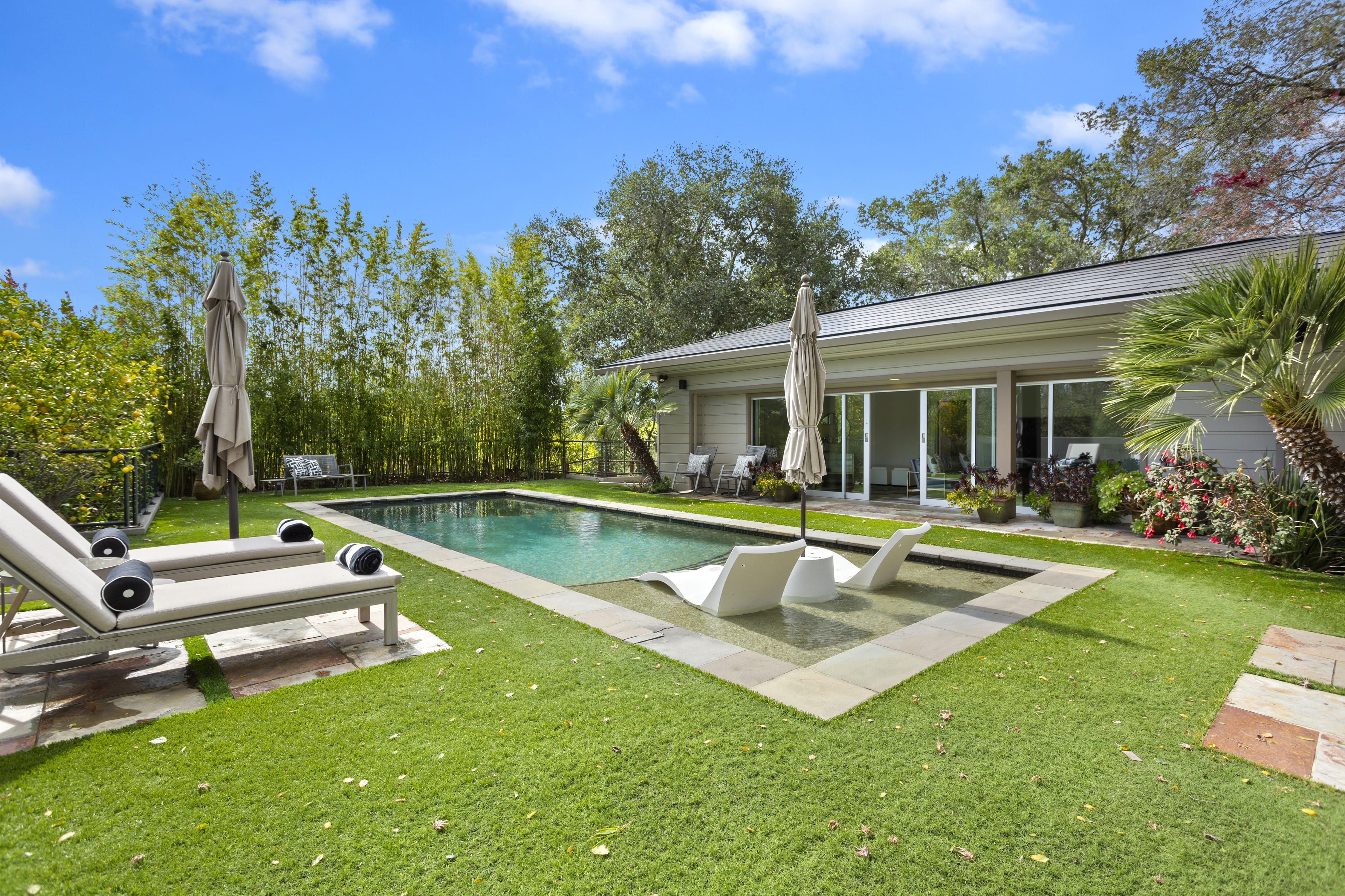 Upstairs, you’ll find three generously sized bedrooms, including a spectacular primary suite with a spacious retreat and a luxurious custom soaking tub for ultimate relaxation. The 4th bedroom, located in the stunning pool house, includes a kitchenette and full bath.
