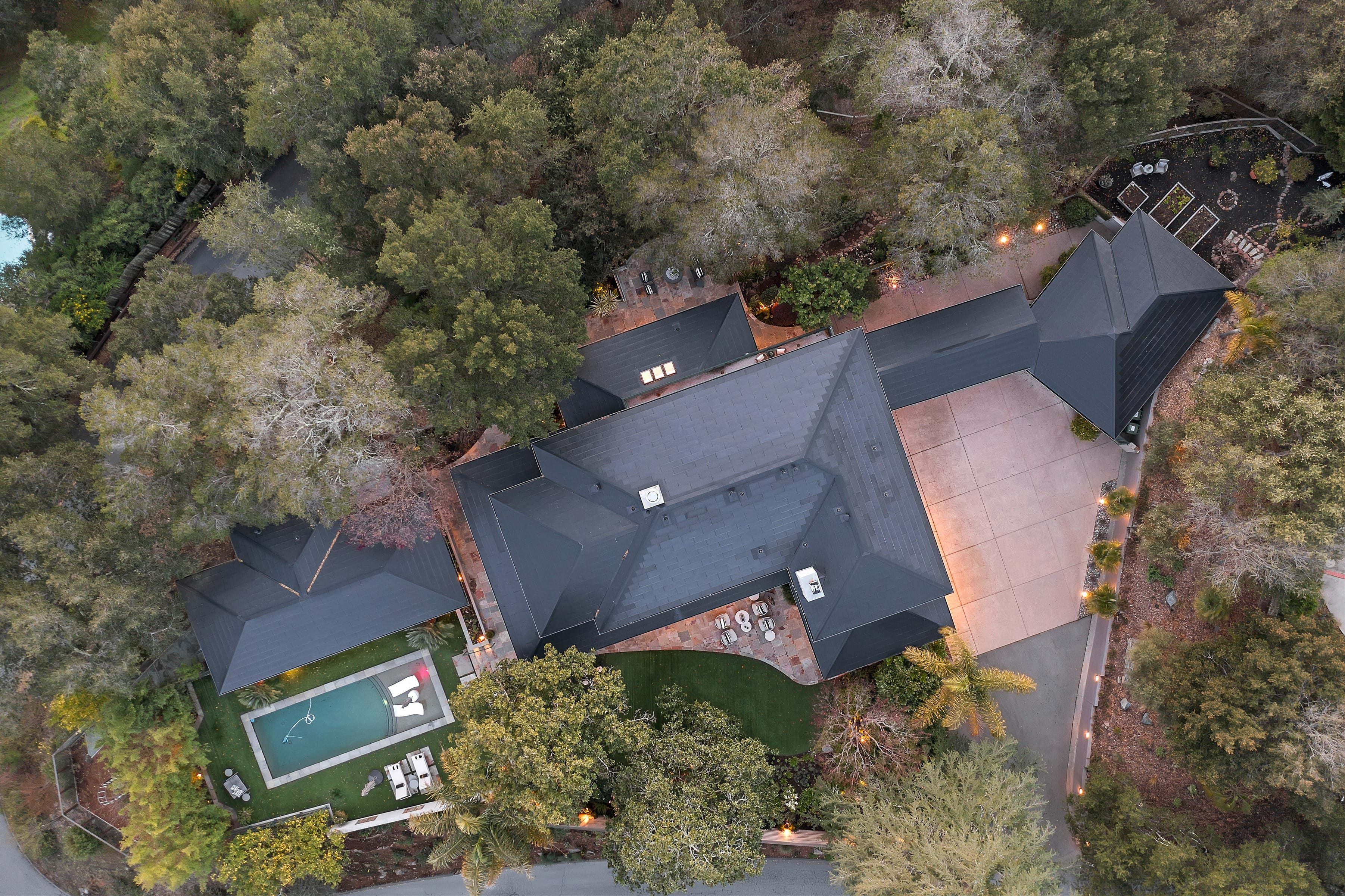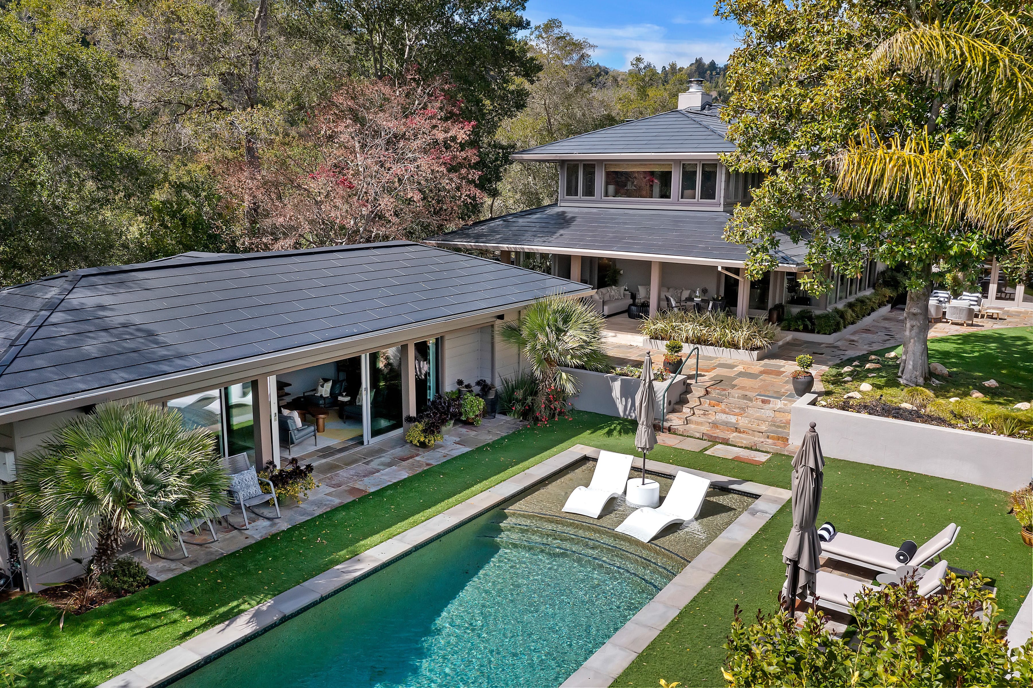 Additional features include Tesla Solar Roof Tiles, 3 power walls, 1500+ bottle temperature-controlled wine room, raised vegetable boxes, a 1700+ gallon recaptured irrigation system and smart home designed electronic controls.