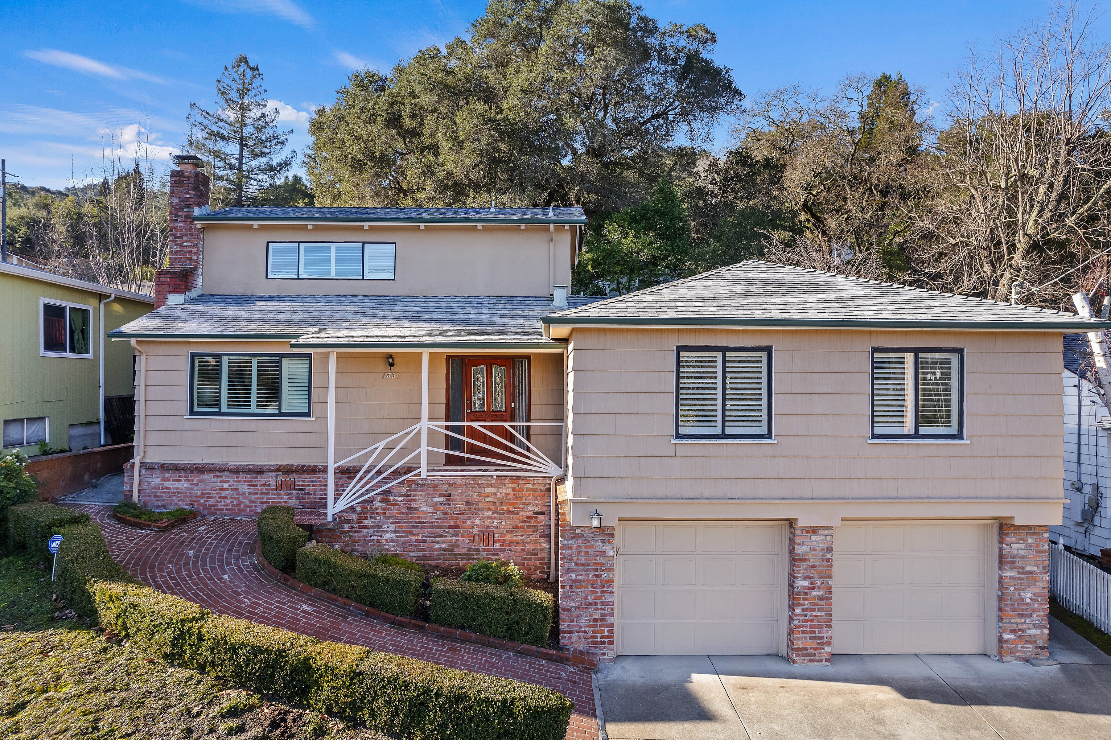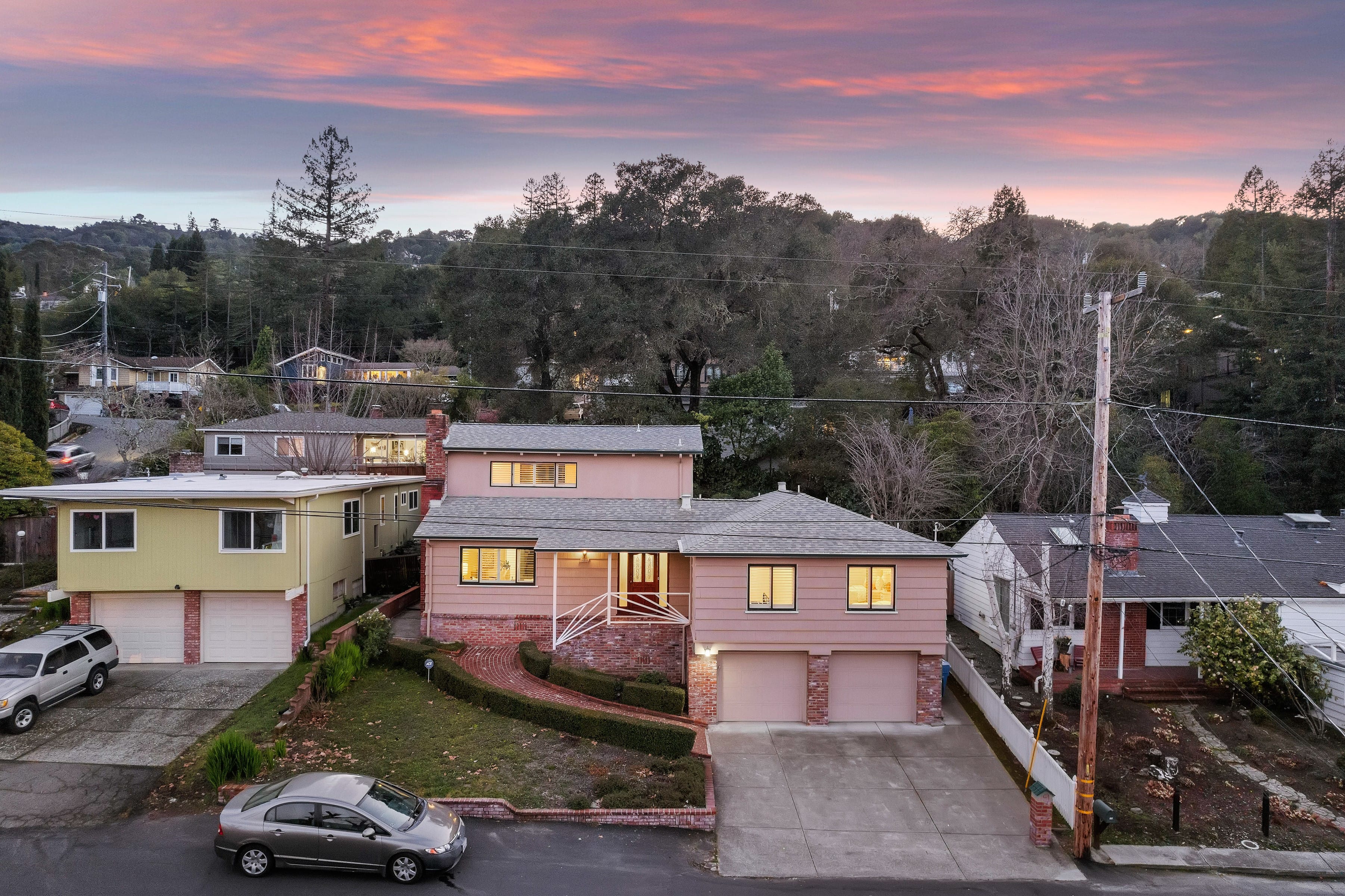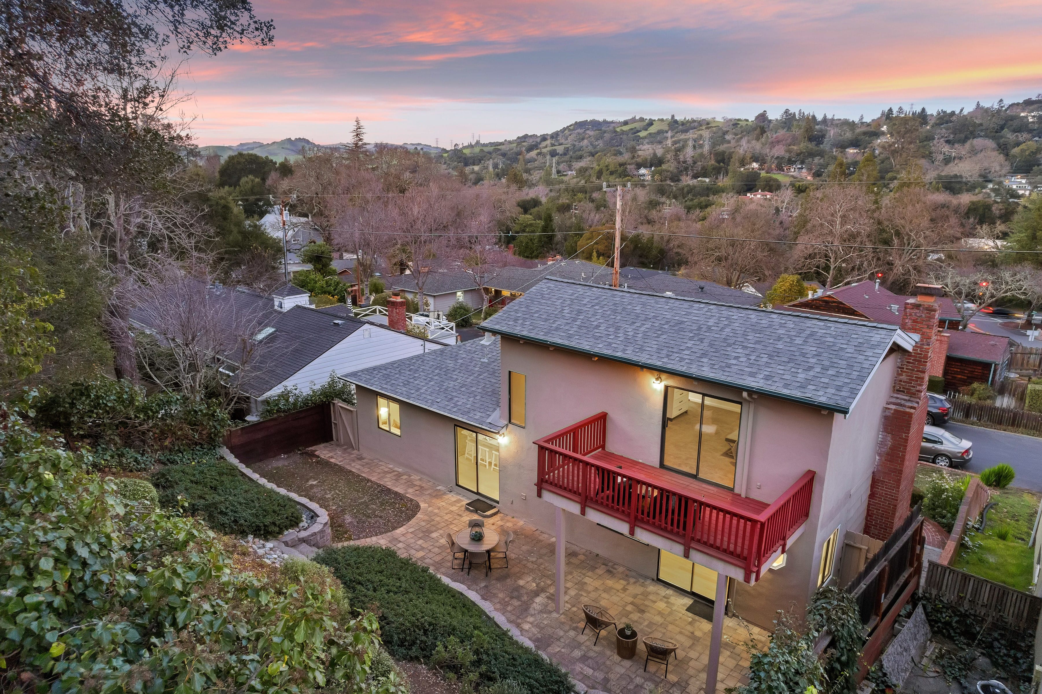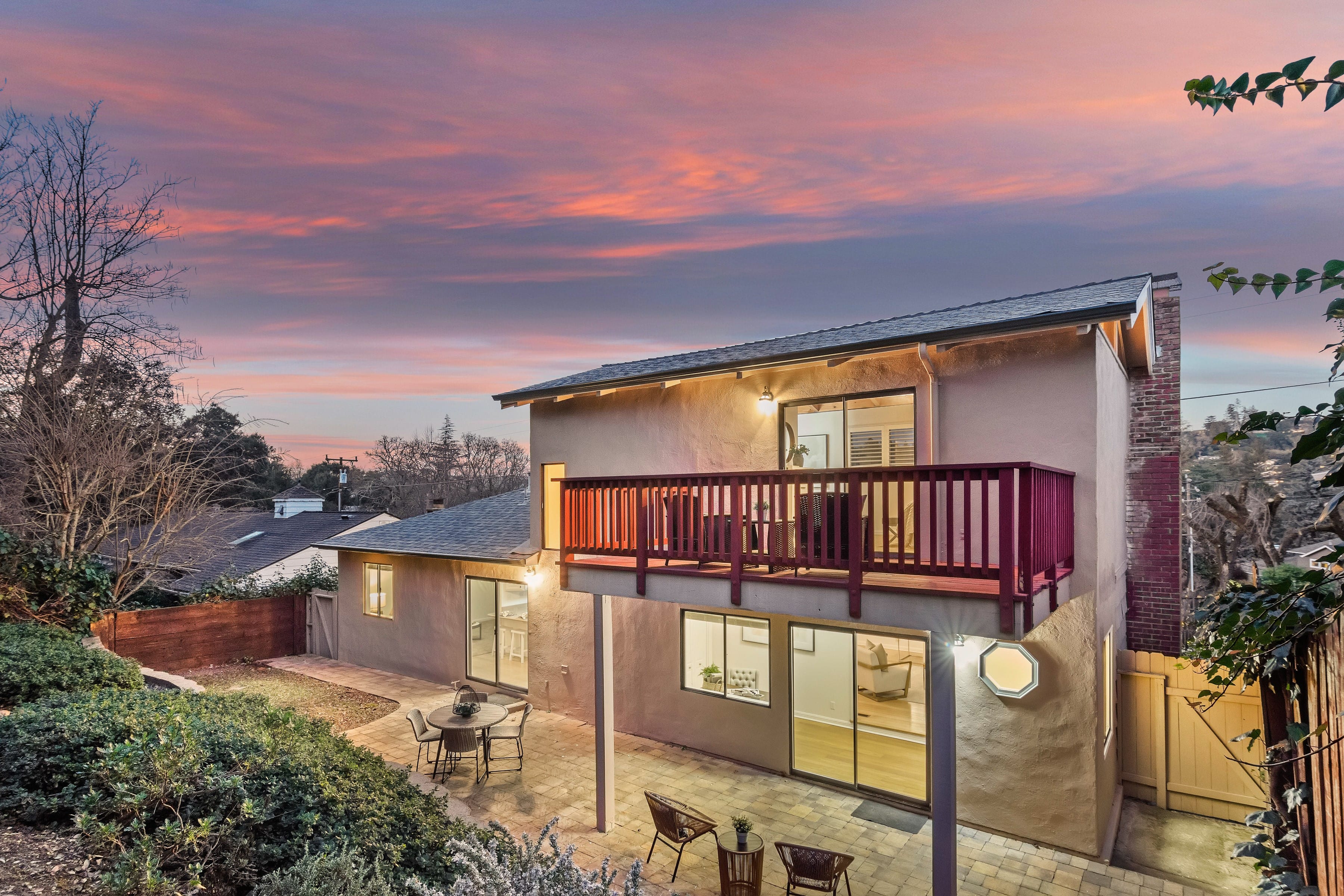 This charming 1953 home, making its first debut in over 50 years, offers 1,870 sq ft with 3 bedrooms and 2 baths, freshly painted and ready for its new owner. Original hardwood floors enhance the living and dining areas, while the kitchen flows seamlessly into the family room. A bonus sunroom with outdoor access and laundry facilities is perfect for an office or playroom. Two spacious bedrooms and a bath are on the main level, while the private primary suite upstairs features its own porch. Step outside to a flat patio and yard off the kitchen—ideal for outdoor dining. Located within an easy stroll to Wagner Ranch School, shopping, and BART, this home is nestled in a charming, friendly neighborhood.