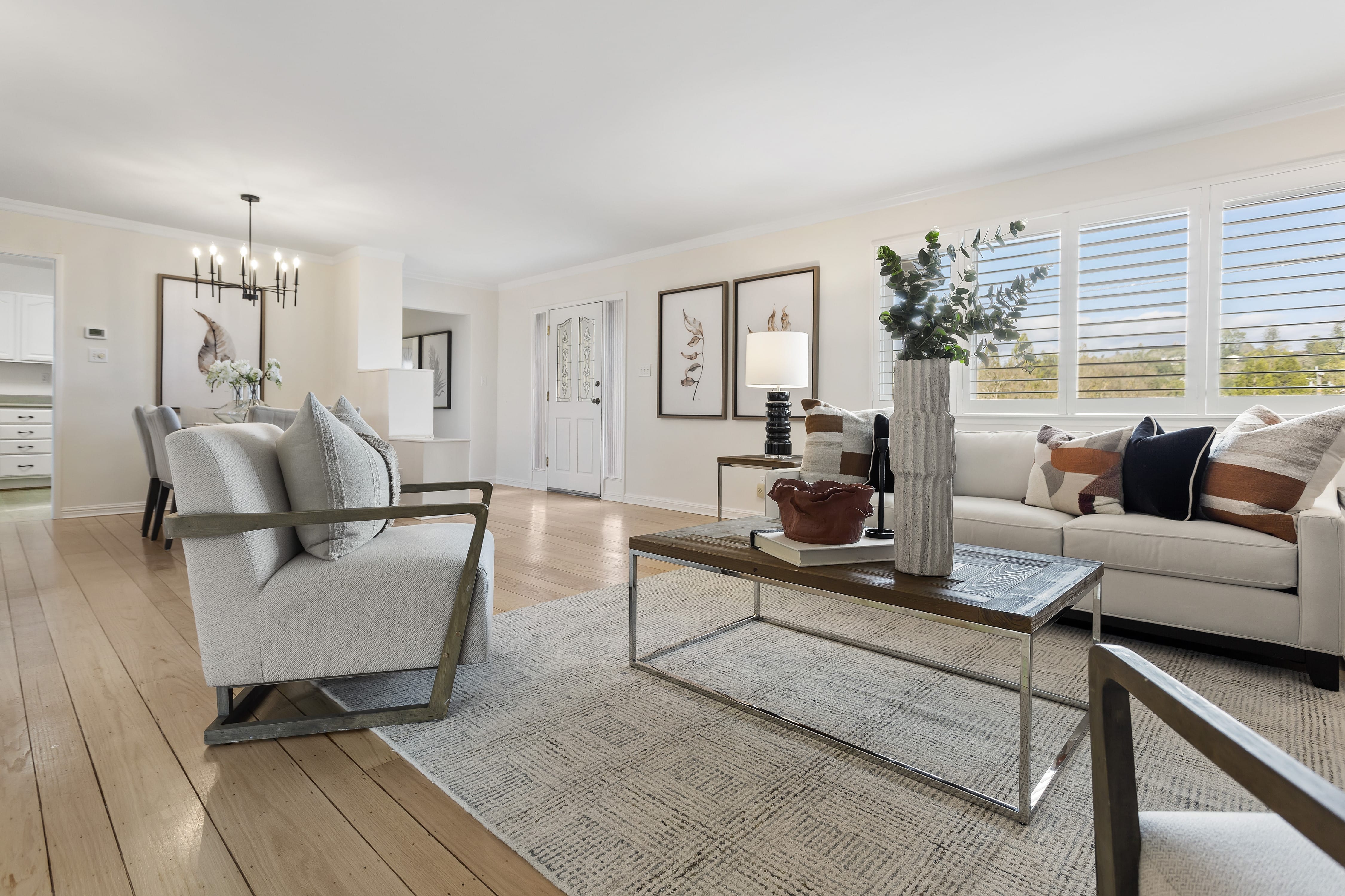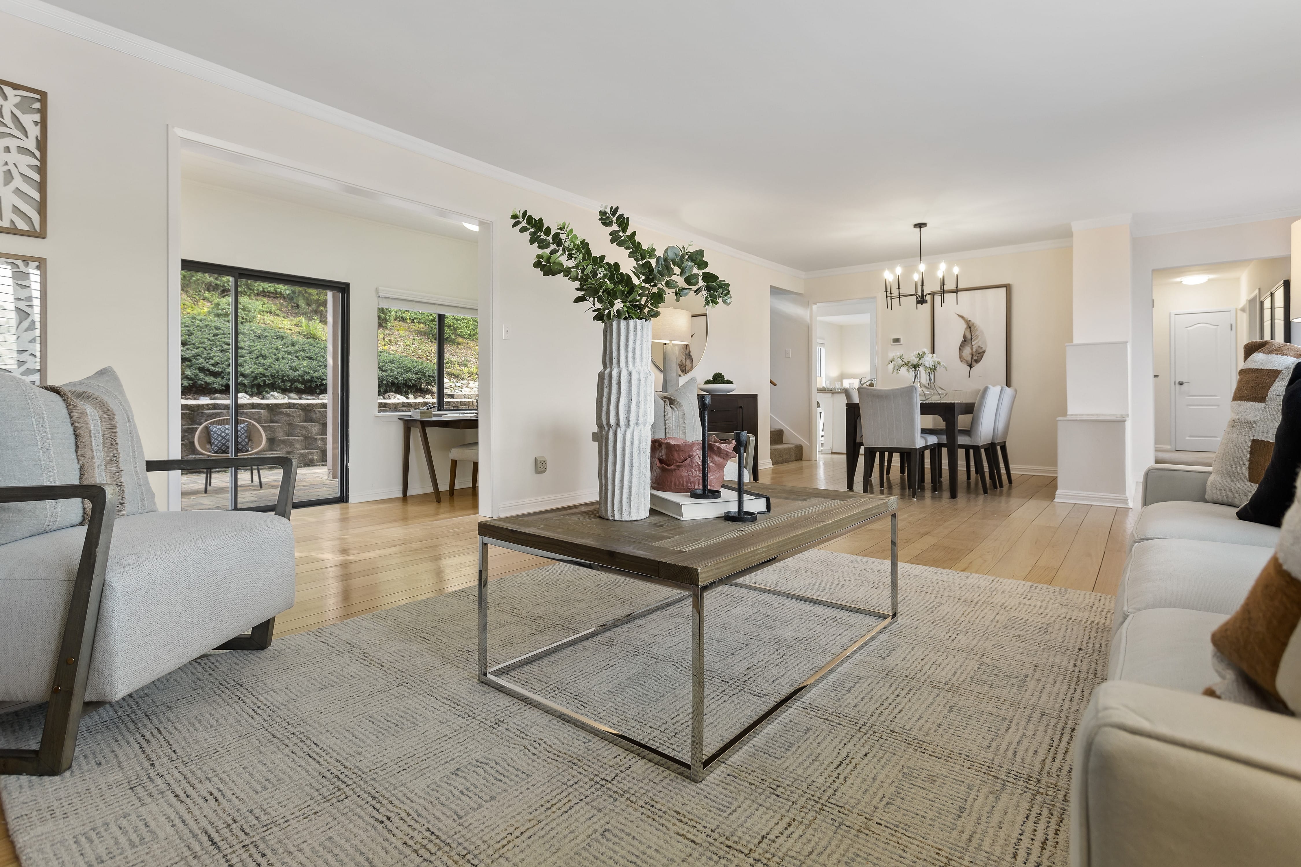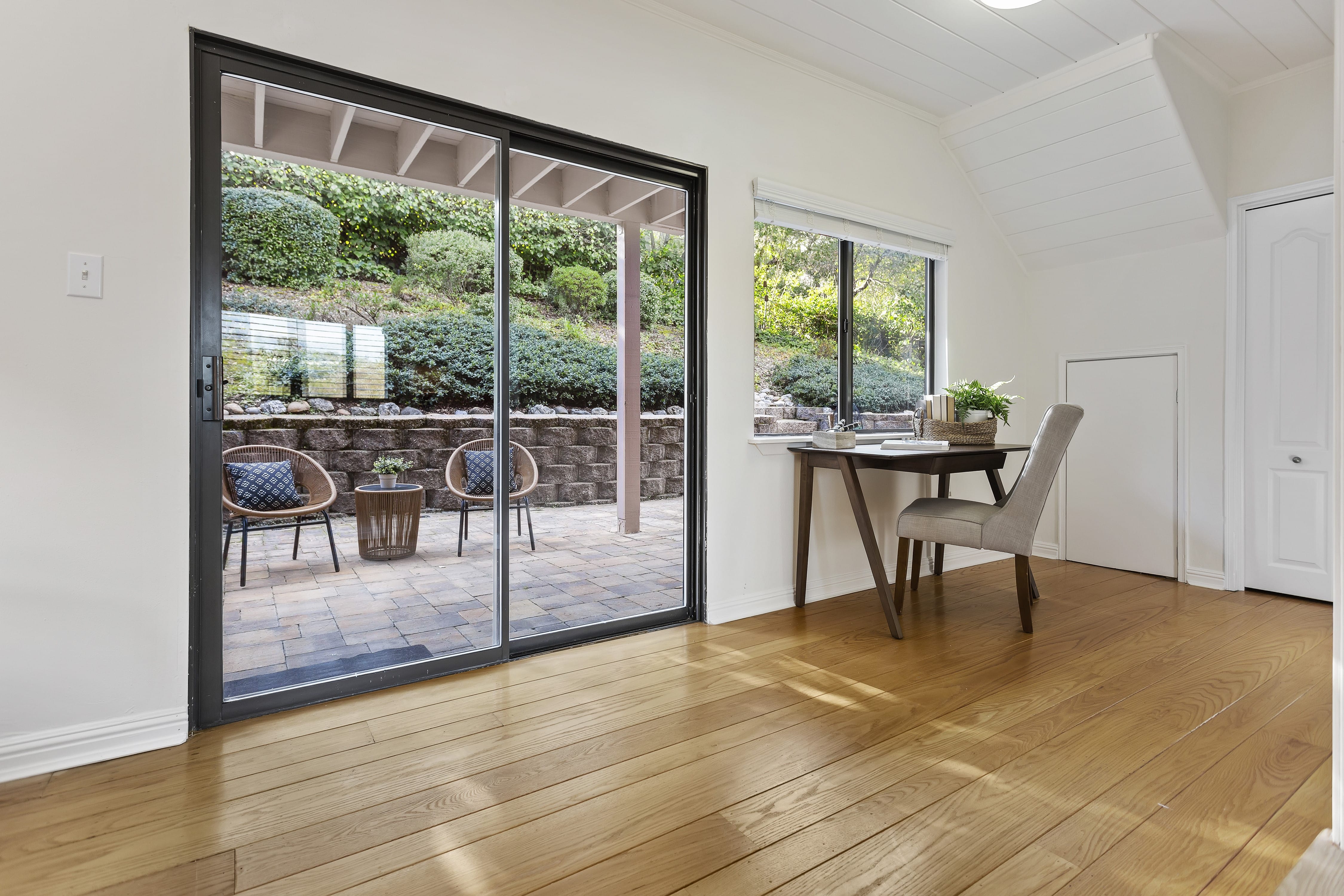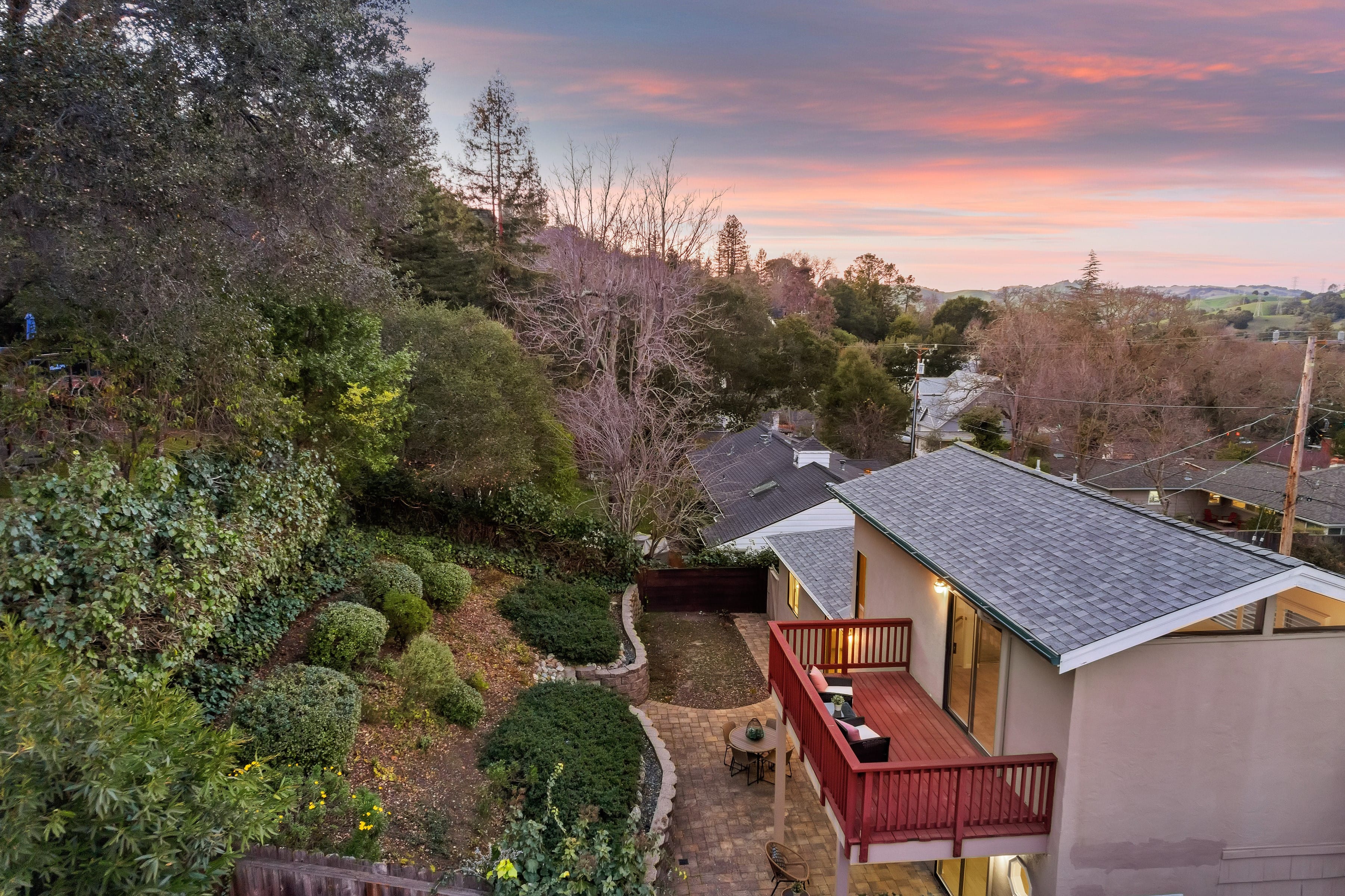 This charming 1953 home, making its first debut in over 50 years, offers 1,870 sq ft with 3 bedrooms and 2 baths, freshly painted and ready for its new owner. Original hardwood floors enhance the living and dining areas, while the kitchen flows seamlessly into the family room. A bonus sunroom with outdoor access and laundry facilities is perfect for an office or playroom. Two spacious bedrooms and a bath are on the main level, while the private primary suite upstairs features its own porch. Step outside to a flat patio and yard off the kitchen—ideal for outdoor dining. Located within an easy stroll to Wagner Ranch School, shopping, and BART, this home is nestled in a charming, friendly neighborhood.