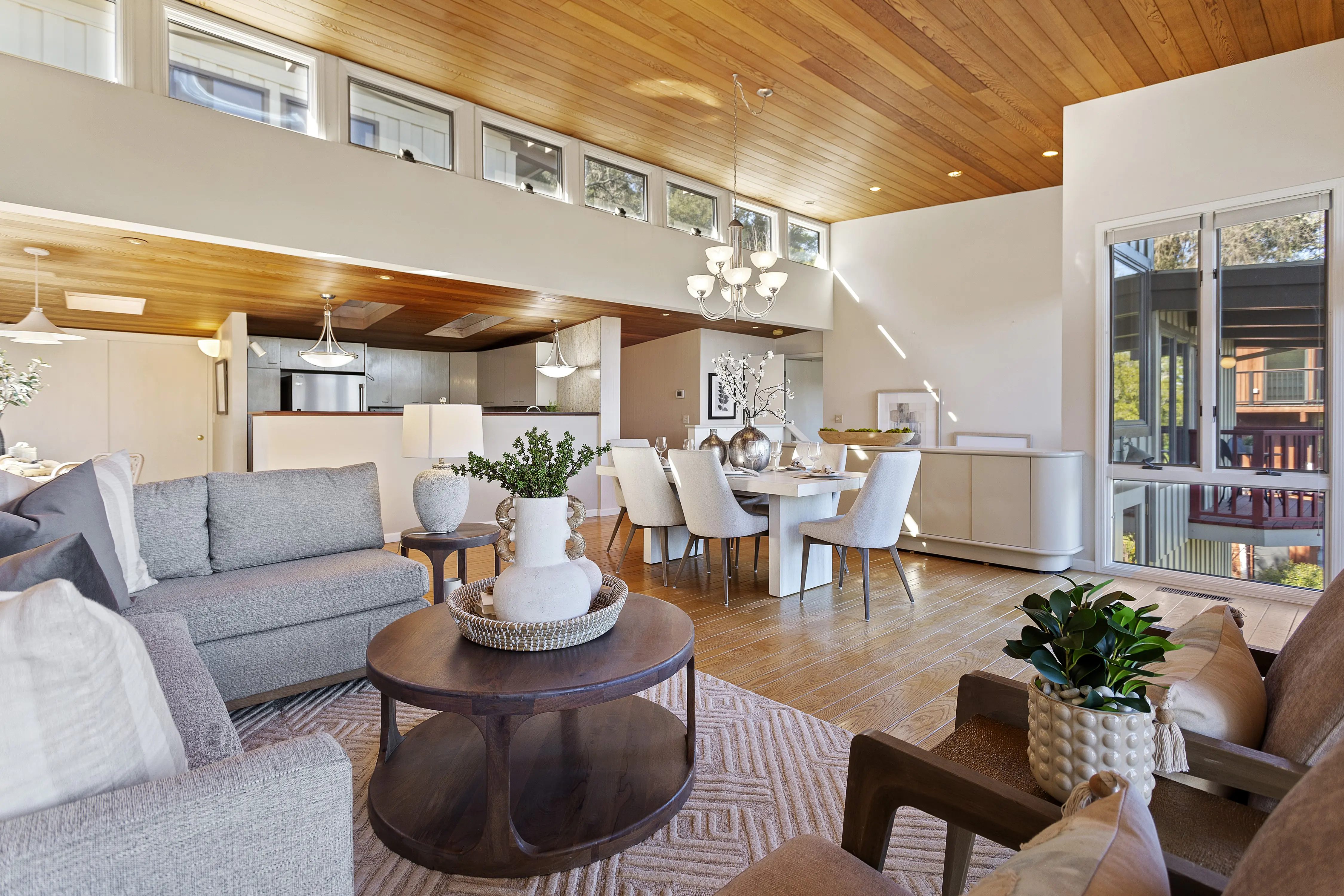 Nestled in the Claremont neighborhood of Orinda, this wonderful 3 bedroom, 2.5 bath, 2,593 sf home with stunning views and a spacious layout is ready to impress. Rebuilt from the studs up in 1988, this home features hardwood floors, wood ceilings with skylights, and walls of windows that capture breathtaking views of the surrounding hills and the expansive 0.22-acre lot.