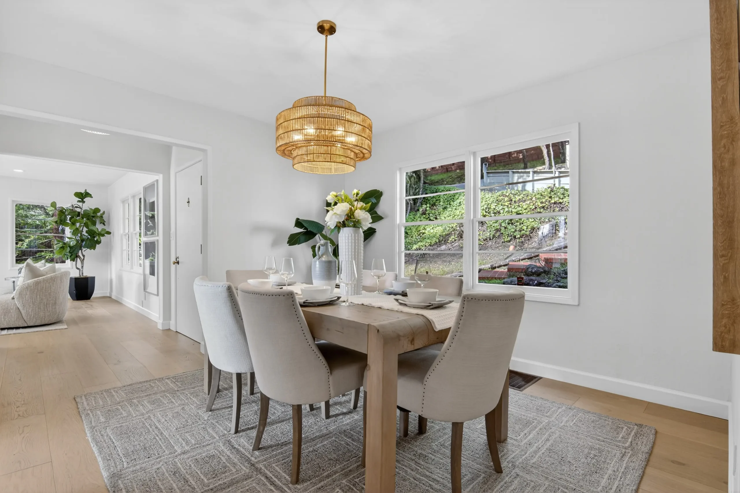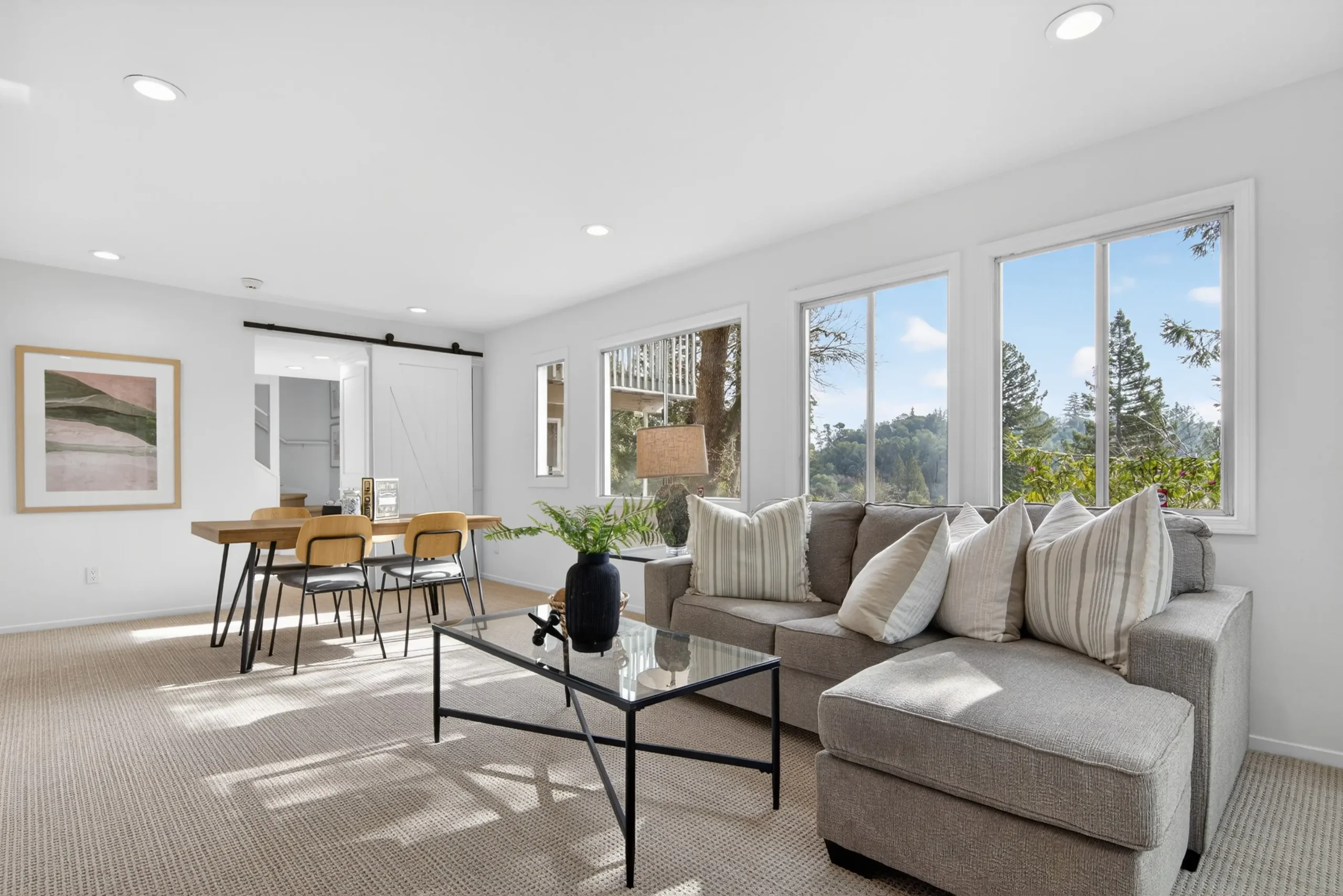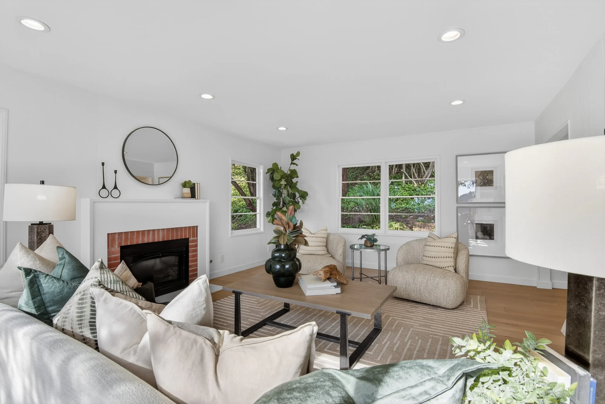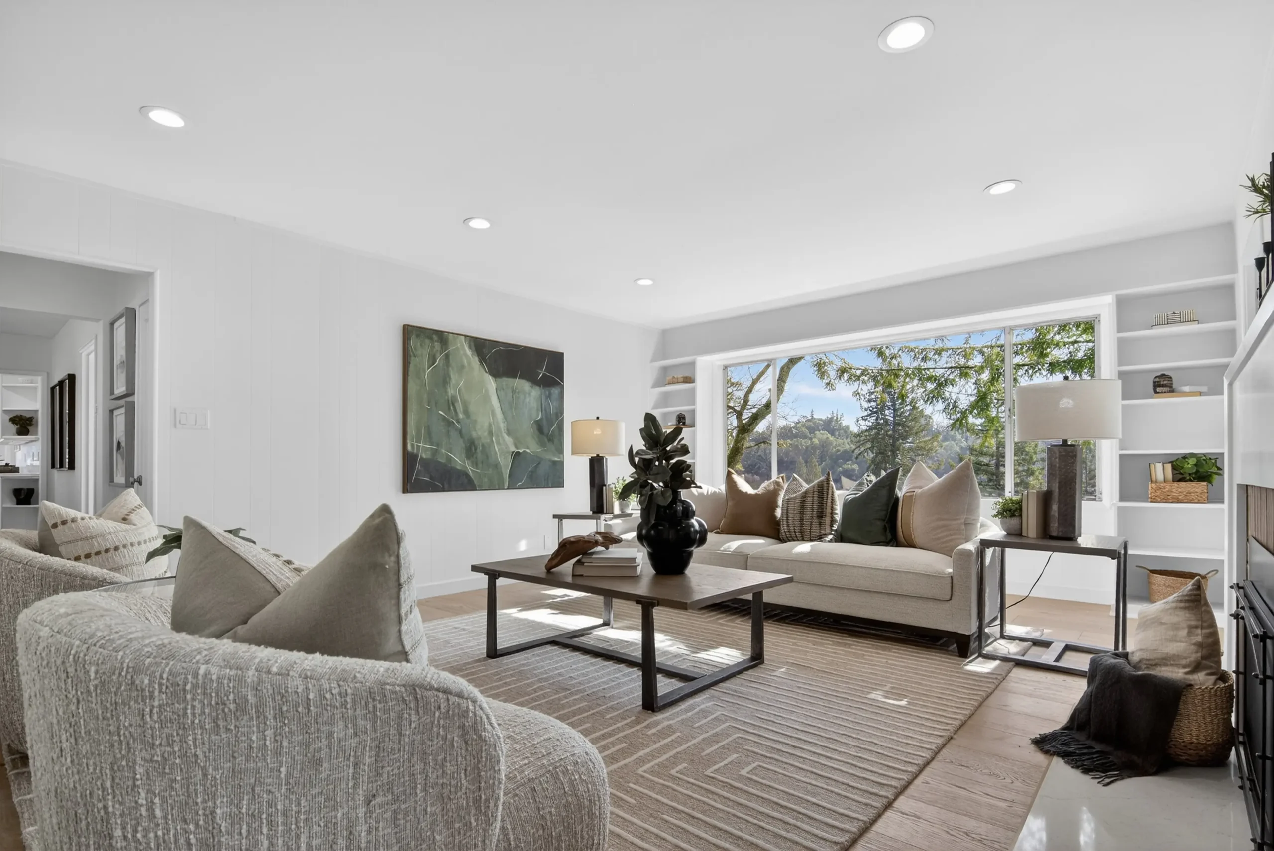 Fresh interior paint, new carpet, and sleek engineered hardwoods create a contemporary feel. Peace of mind comes via a brand-new roof, new central AC, and new water heater. Expansive windows frame serene, wooded views, while a cozy fireplace and custom built-ins anchor the living room.