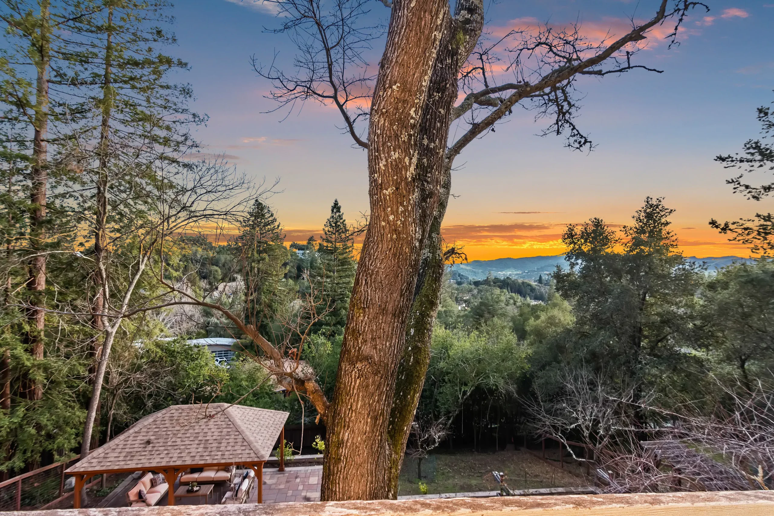 The multi-level backyard features mature fruit trees, a gazebo, hot tub, and a smart-controlled heated patio. Includes a detached garage/workshop and access to top-tier schools: Sleepy Hollow, OIS, and Miramonte High.