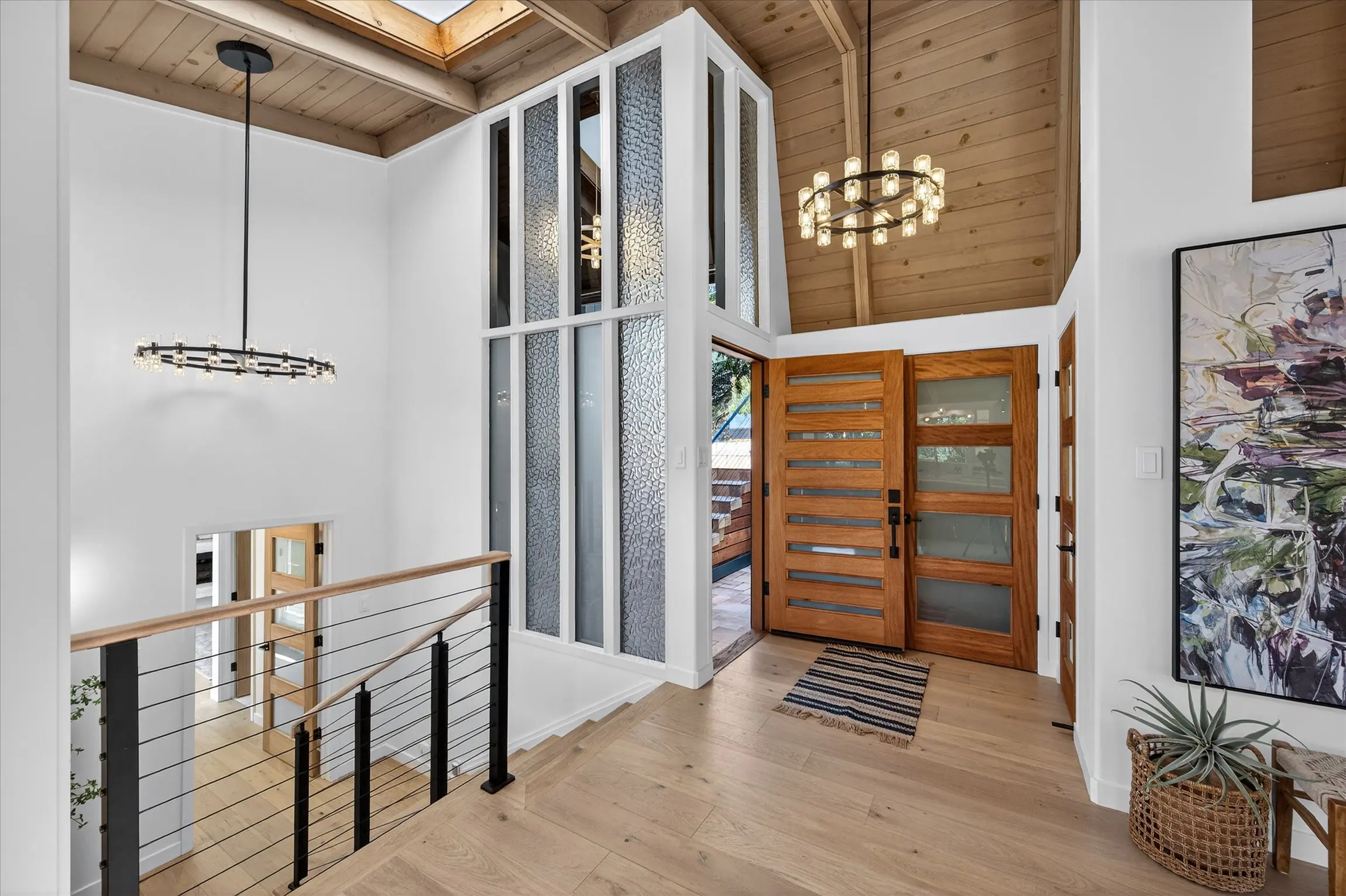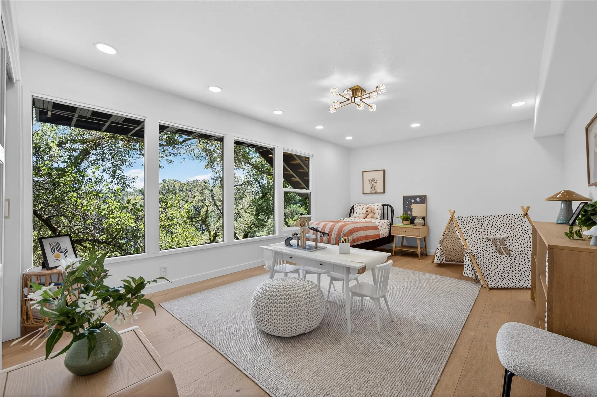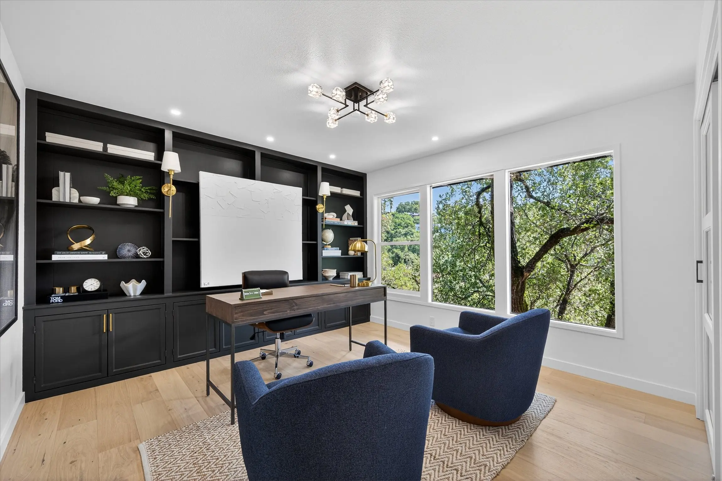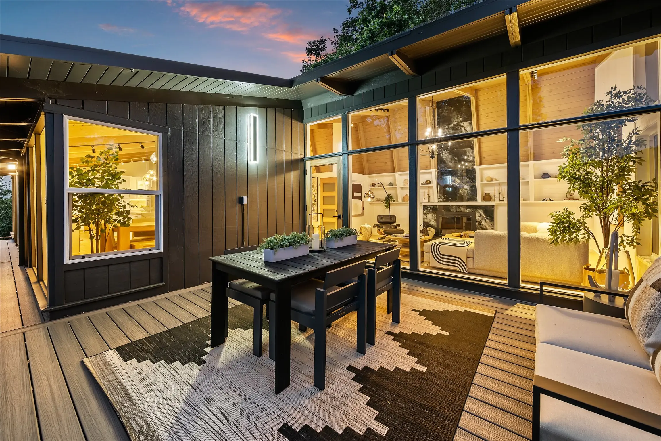 Fully remodeled from top to bottom, this stunning 4-bedroom, 3.5 bath Orinda Country Club mid-century retreat offers approximately 2,559 sq ft of beautifully updated living space on a private .39-acre lot surrounded by majestic heritage oak trees and classic Orinda views. The light-filled open main level features soaring ceilings, a dramatic marble-faced fireplace, expansive picture windows, new wood flooring, and an updated kitchen with stainless steel appliances, all opening to expansive decks with a barbecue area for seamless indoor-outdoor living. The private primary suite includes its own deck and beautifully appointed bath with large windows framing the natural landscape. Additional highlights include a hidden wine cellar with adjacent storage, level front yard, smart lighting with touch-activated stair illumination and centralized controls, and a two-car garage. Tucked away yet minutes to Orinda Country Club, BART, Highway 24, the Village, and top-rated Orinda schools including Sleepy Hollow Elementary, Orinda Intermediate, and Miramonte High School.