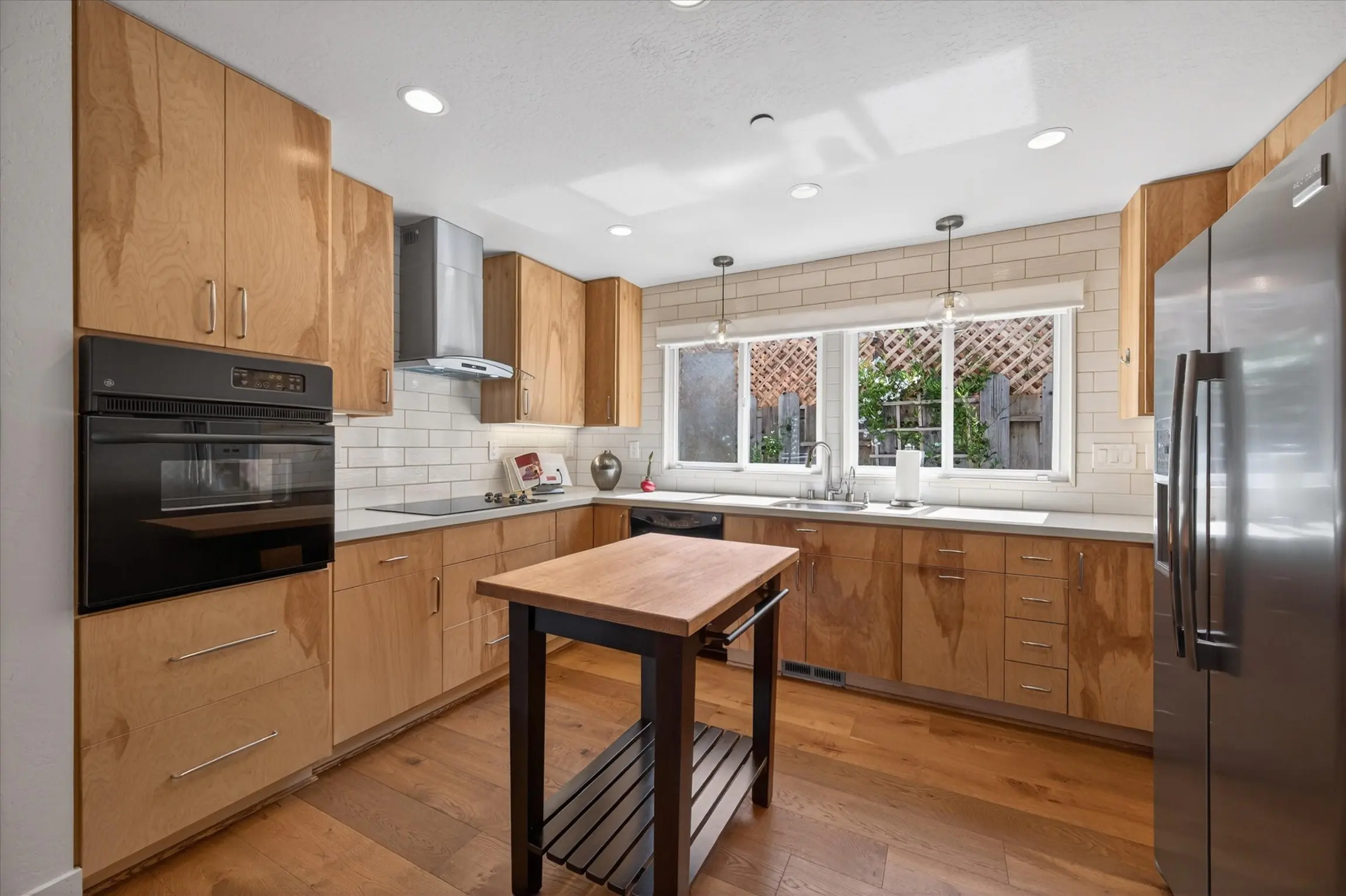 Cool mid-century style defines this 1,421 sq ft, 2 bedroom, 2 bathroom home (plus private office – not included in sq ft) tucked at the end of a quiet street, just moments from walking and biking paths to downtown.